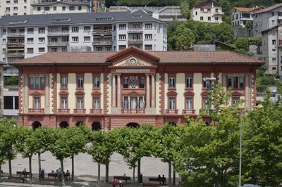 La Casa Consistorial, pionera en la construcción con hormigón de Gipuzkoa y proyectada por el arquitecto Ramón Cortazar e inaugurada en 1901, se ubica en la plaza de Unzaga, plaza principal de la ciudad de Eibar. La edificación se complementa con la plaza, y ambas, plaza y Casa Consistorial, suponen el primer Plan de Ensanche de Eibar en el siglo XX, cuyo objetivo era la materialización de un espacio amplio de reunión y expansión para la ciudadanía.