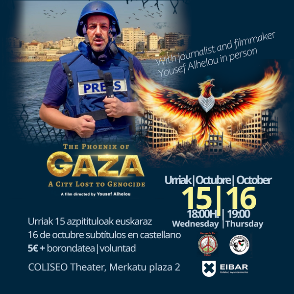 Por su parte, el concejal de Cultura, Andoni Zabala, ha destacado el poder del cine como instrumento de conservación de la memoria. "Desde el área de Cultura, tenemos el deber de programar actividades que, como esta, nos confronten con otras realidades y nos hagan más conscientes. 'El Fénix de Gaza' es un documento audiovisual de un valor incalculable porque captura la esencia de un pueblo y su patrimonio antes de la destrucción. No es solo un archivo; es un acto de resistencia cultural y una defensa de la vida sobre la guerra", ha afirmado Zabala. "Traer este trabajo a Eibar es apostar por una cultura comprometida con los derechos humanos y la paz".