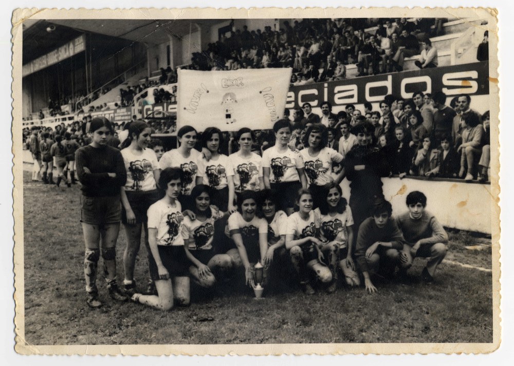 Emakumearen presentzia Ipuruako argazkian dakusagu: “Eibar” emakumeen futbol taldea, Ipuruako zelaian bertan jokatzen zuen taldea. Hauexek azaltzen dira argazkian: Vega Solas (atezaina), Marisol Lahidalga, Marivi Ocamica, Elena Perez, Elisabeth Aldalur, Judith Santos, Timo Treviño, Josune Sarasketa, Mertxe Baglietto, Marisa Gorrotxategi, Amelia Pintado, Almudena Urizar eta Conchi Alonso. Teknikariak gizonezkoak ziren: Mikel Iceta, Txemi Arregi eta Fito Saez. Argazkia Segundo Varela Petite argazkilari eibartarrena da.