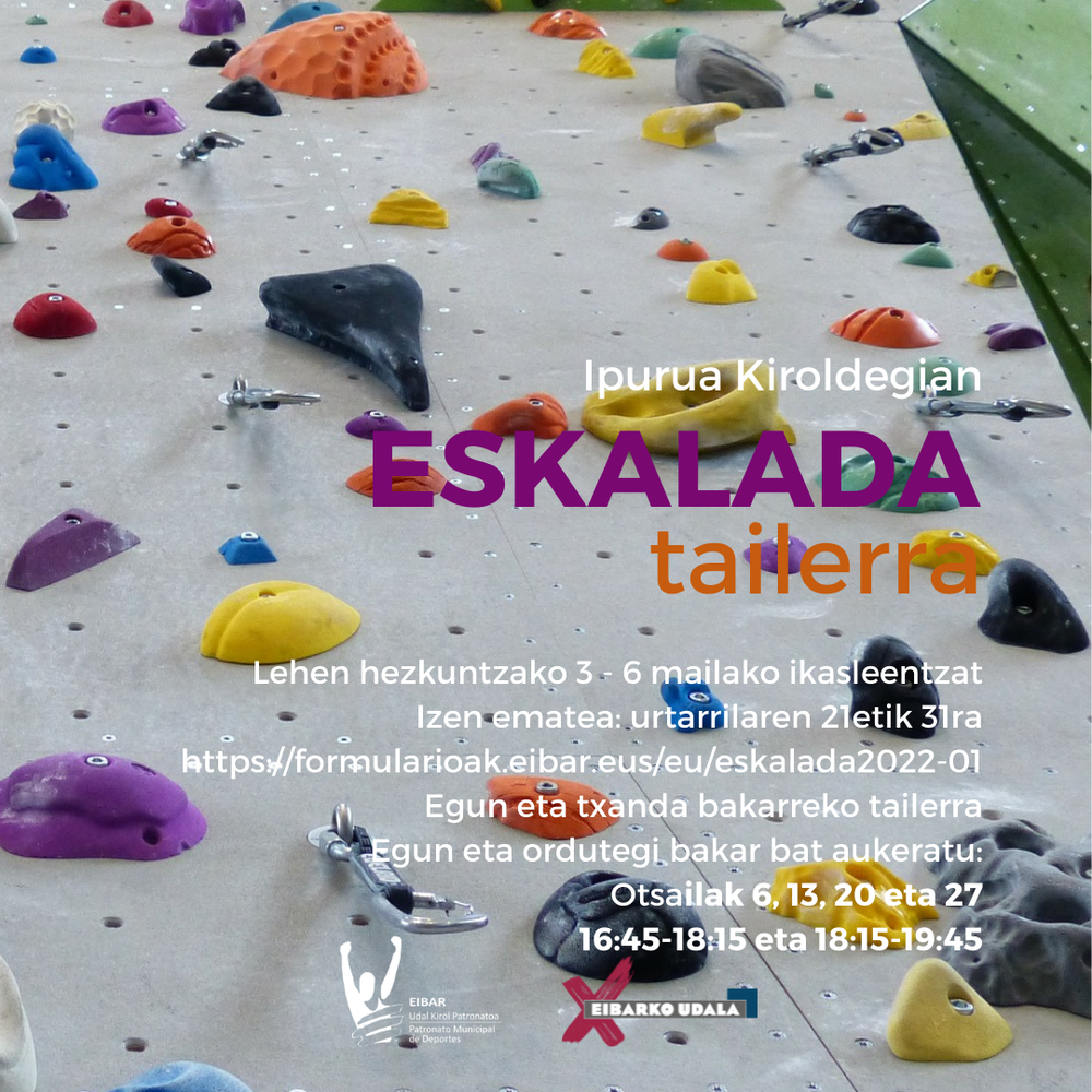 Eibarko Udalak antolatu duen eskalada ikastaroan epearen barruan izena eman duten haur guztiak onartu dira. Ikastaroa lehen hezkuntzako 3., 4., 5., eta 6. ikasleei zuzenduta dago.